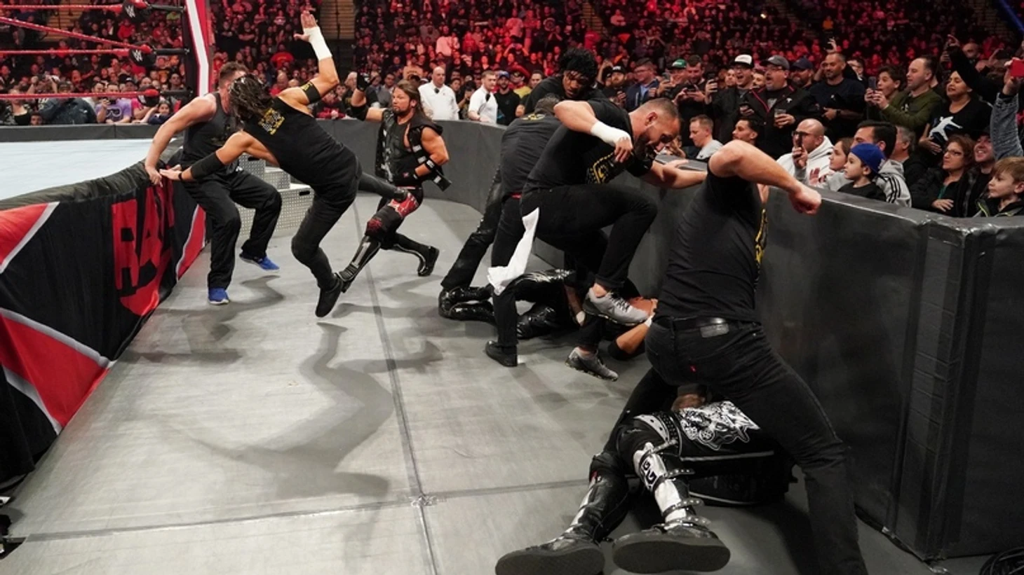 Тут появился весь состав Неоспоримой Эры и Игрок задал Роллинсу прям вопрос - "Ты будешь со мной или ты против меня?". Толком Сет не успел обдумать предложение - на горизонте объявились The OC и без лишних слов они приготовились показать, почему RAW сейчас готово к непрошенным гостям. Эра решила не рисковать и попробовать уйти с рингсайда. Им это удалось - и тут The OC подверглись атаке со стороны Доминика Дайджаковича и Дэмиена Приста, что дало Эре возможность атаковать The OC. Однако на помощь оригиналам Bullet Club пришли Зак Райдер, Курт Хоукинс, Эрик Роуэн и Ар-Труф - он расправились с тяжами NXT и спугнули Эру. А вот Роллинс был в шоке от ситуации и решил покинуть ринг.