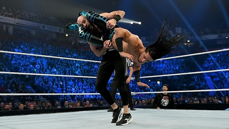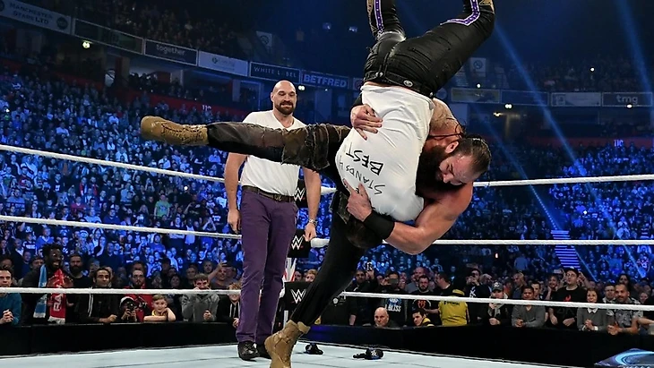 На ринг выходит Брон Строумэн. Тайсон настроен позитивно, он благодарит Брона за возможность выступить в WWE. Бигмэны жмут друг другу руки. Фьюри предлагает в следующий раз выступить вместе на ринге как одна команда. Монстру эта идея по душе, но он говорит, что в раздевалке не найдется такой тупой команды, которая решится выйти против них.