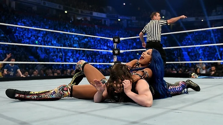 Матч начинается с полнейшей доминации Саши, Никки удается отвечать лишь контрвыпадами. После проведенной метеоры от Саши, шотландке удается выбросить соперницу за ринг, где сама Кросс атаковала Бэйли, сидящую за комментаторским столом. Чемпионка тут же принялась мстить, схватив за ноги Никки, а Босс смогла воспользоваться этим и пробить сопернице в корпус.