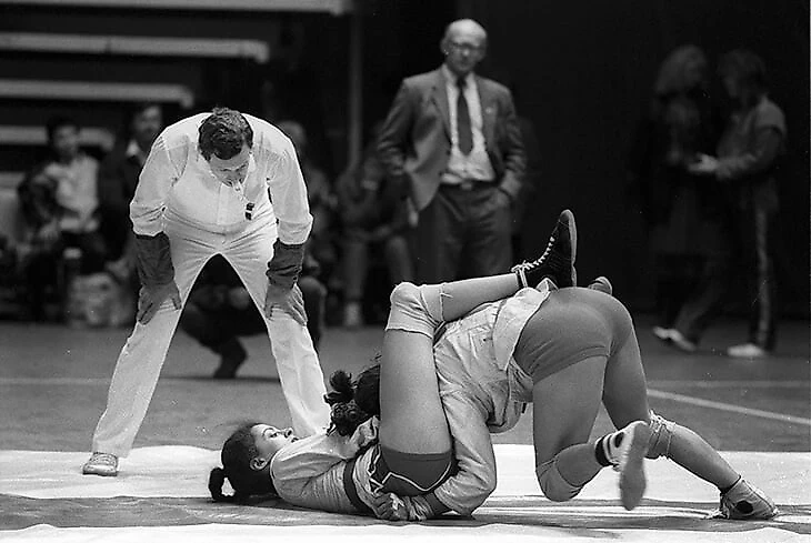 С 1980-го в память одного из основателей самбо – Анатолия Харлампиева – проводится международный турнир. С 1983-го в программу чемпионатов мира было включено и женское самбо. Вот финальный поединок в весовой категории до 56 кг между советскими спортсменками Зульфией Гусейновой и Шестаковой на турнире памяти Харлампиева в 1990-м.