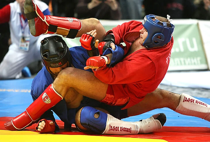Боевое самбо – симбиоз практически всех известных единоборств. К элементам спортивного самбо подключили дзюдо, бокс, кикбоксинг, вольную борьбу и джиу-джитсу. То есть в боевом можно бить и руками, и ногами, а также душить. Из экипировки добавили шлемы, перчатки и щитки на ноги. Впрочем, в воинских частях тренировались и без них: