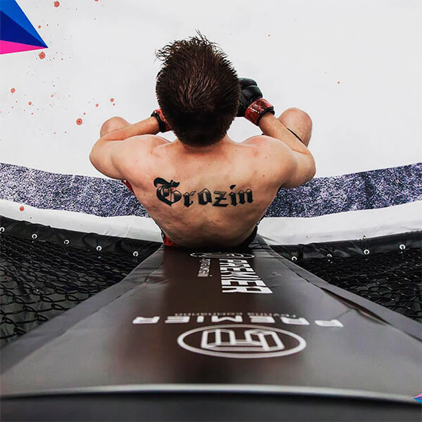 У Александра Грозина в MMA 13 побед и 2 поражения. На спине у него набита фамилия, и на вопрос Sports.ru он ответил так: «Да все же просто. В MMA по тебе бьют руками, ногами, пытаются бросить со всей дури. Голову отбивают, а там со временем и до провалов в памяти не далеко. Я вот не хочу свою фамилию забывать из-за этого, поэтому такая татуировка – и мне напоминание, и всем тем, кто каждый раз видит шоу в моем исполнении».