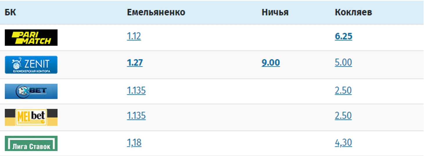 Бой Емельяненко – Кокляев: коэффициенты и прогнозы на бой 29 ноября