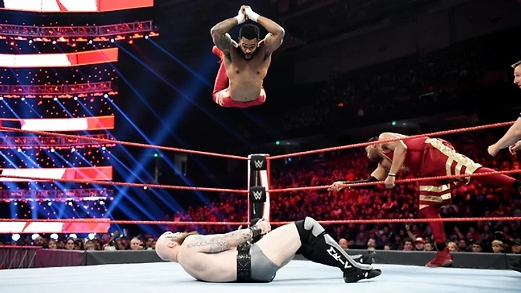 Он извинился за то, что прервал движуху команд, и предложил им закончить, после чего он начнет свои дела, но и Raiders и Profits молча и недоумевая ушли. Роллинс же заявил, что у него есть незавершенные дела с AoP, и ему наплевать, что они с ним сделают, он требует матча прямо здесь и прямо сейчас. К рингу вышел Кевин Оуэнс. Сет сказал, что понимает наличие проблем между AoP и Кевином, но он тут пытается решить свои проблемы с Авторами. Если Кев хочет просто поговорить, то ему совсем не нужна труба, которую он с собой таскает. Канадец ответил, что Роллинсу не о чем волноваться, ведь эта труба предназначается не ему (пока что), а АоР. Также он прекрасно понимает, почему Сет вызывает их сейчас: он знает, что Эйкэм и Резар не на арене. Если бы они были на арене Оуэнс бы их нашел. Поэтому он решил спросить у Роллинса, когда они появятся. Ведь он знает, что план заключается в том, что они втроем нападут и изобьют Кевина. Сет стал оправдываться, а нам показали на титантроне, что АоР приехали на арену. После рекламы Роллинс стал убеждать Оэунса, что он не причем, мол, вот видишь, Эйкэм и Резар сами приехали на арену, они собираются надрать тебе зад, а я тут не причем. Кевин не очень ему поверил, и предложил надрать зад Сета, пока у него есть такая возможность. Роллинс покинул ринг от греха, а также заявил, что покинет арену и не будет вмешиваться в разборки Оуэнса и АоР. Пусть это непопулярное решение, но возможно так он сможет убедить Кевина в своей непричастности. «Хорошо, иди! Так будет безопаснее для тебя, ведь когда я разберусь с АоР, я отправлюсь за твоей задницей» — крикнул ему в след канадец, пригласив в ринг АоР. Эйкэм и Резар обратились к Оуэнсу с титантрона на албанском, и ни с одним тезисом Кевин поспорить не сумел, поэтому снова вызвал их… но пришел Сэми Зейн с Моджо Роули. Он сообщил нам, что получил лицензию менеджера, благодаря которой он может появляться в качестве менеджера на обоих брендах. Однако, Кевин знает, что Сэми ни разу не менеджер. Он он пытается помочь людям, освободить их. И он хочет освободить Кевина из тюрьмы, которая в голове у Оуэнса. Зейн сказал, что понимает нервы и проблемы Кевина с АоР, но то, что он сделал с Роули — неприемлемо. Поэтому он предложил Кеву признать, что тот был неправ и извиниться перед Моджо. Роули тоже наехал на Оуэнса. Зейн попытался всех успокоить, а особенно Моджо, ведь с Кевином лучше в таком тоне не разговаривать, особенно, когда у него в руках стальная труба. Роули же ответил, что каждый может быть крутым с трубой в руках. «Проверим это заявление» — сказал Оуэнс, кинул трубу в руки Моджо и провел Станнер. Сэми испугался и покинул ринг, а Кевин еще и трубой побил Роули, после чего отправился искать AoP.