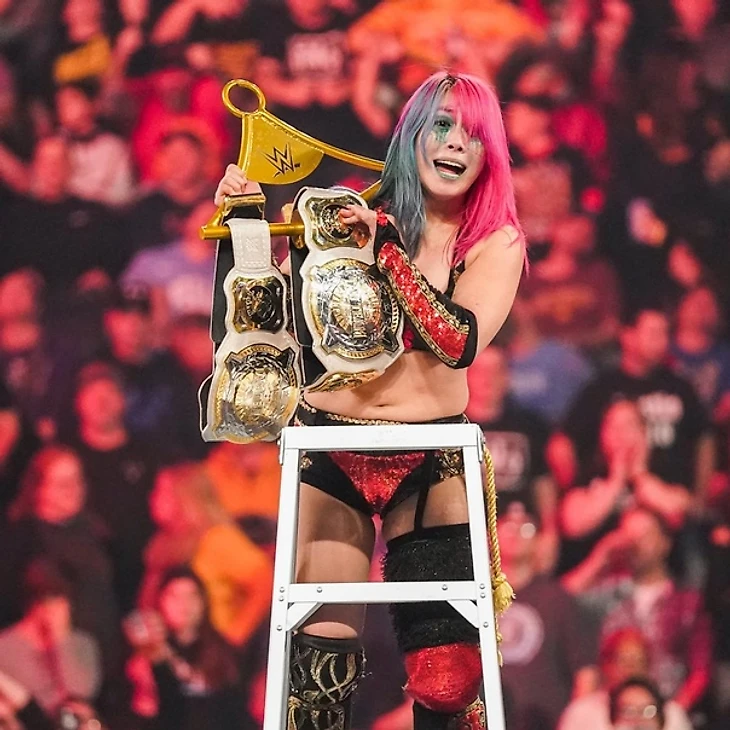 Сразу после гонга претендентки принялись забивать чемпионок, отправившись с ними за пределы ринга. Аска полетела на стол стулья, стоящие на нем, а Шарлотт, кинув Каири на другой стол, разобрала комментеторский и взяла в руки стул. Японки попытались отбиться, но тщетно, а Сэйн и вовсе в бут влетела с апрона. Затем Бекки и Шарлотт вдвоем решили уничтожть Каири на комментаторских столах, бросая ее с одного на другой, а та лишь звала Аску на помощь. Когда же претендентки взяли лестницу, Аска нейтрализовала их стулом, а Флэр и вовсе досталось 2 командных маневра с использованием стула. Потом досталось и Бекки, но она в какой-то момент отправила Аску лицом на ножки стула, а потом и в лестницу. «Мужик» схватилась за лестницу, Каири попыталась ей помешать, но получила от Флэр, а затем и Аске почти досталась командная бомба на стол. Жертвуя собой, ее спасла Сэйн, но с ней справились, а ее партнершу отправили лицом в стойку ринга. Шарлотт и Бекки стали устанавливать лестницу в ринге, а Каири стала кидать в них стульями, но ни разу не попала, а пара стульев и вовсе от канатов отрикошетили чуть не в нее саму. Претенденткам это не понравилось, и они решили разобраться с Сэйн, та попыталась сбежать под ринг, но, когда поняла, что не получиться, выташила огнетушитель, и охладила пыл соперниц. Аска же притащила толстенный канат, и побила оппоненток им, и каждой из соперниц досталась командная работа. Флэр усадили в кресло комметаторов, побили палкой кендо, а Аска «отсыпала» киков. Бекки же отправили слэмом на лестницу и привязали тем самым канатом. Чемпионки отправились в ринг, чтобы снять титулы, Флэр попробовала помешать и получила кик с апрона. Потом ее впечатали в ограждение, в стойку ринга и отправили в зрительский зал. И когда японки почти уже забрались на лестницу, Флэр пришла по их душу с палкой кендо и атаковала этой же лестницей. Снова Аска была отправлена в стулья на столе, а Сэйн получила эксплоудер в баррикаду (очень жесткий). Потом она решила развязать Линч, но получила стулом по спине, и вместе чемпионки впечатали ее в ступеньки (Каири все-таки жива). Бекки должен был достаться InSane Elbow, но она вовремя подняла колени, отбилась, сама отвязала себя, и принялась разносить японок, а Флэр присоединилась к ней. Действие вернулось в ринг, где Аску и Каири усадили на стул, добавив по атаке. Далее Аске достался легдроп со второго каната сквозь стол на рингсайде. Сэйн впечатали в рингпост, затем в другой и заслэмили на рингсайд. Попытку двойного суплекса на стол она, все-таки перевела в DDT обоим, уложила Шарлотт на стол, Линч рядом с ней и провела InSane Elbow, от которого Флэр ушла, Линч не смогла, а стол выдержал это испытание (I am THE TABLE x2). Видно было, что Каири как-то совсем неважно себя чувствует (не сумела нормально принять гарпун, очень долго готовилась принять бомбу), но была послана пауэрбомбой на стол. Аска однако отомстила за подругу, проведя «Королеве» немецкий суплекс, и закопав соперниц в предметах мебели. Потом она помогла напарнице подняться, они вместе взяли лестницу, установили ее в ринге, Аска стала забираться на нее, Каири осталась «на шухере», но не смогла сопротивляться двоим соперницам со стульями. Досталось и «императрице», котоаря сорвать пояса так и не смогла, зато получила стулом по спине, затем еще и бут с этим же стулом. Линч и Сэйн чуть не убили друг