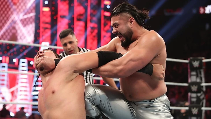 Зелина присутствовала в углу Андраде. Почти сразу он ушел от дропкика Каррийо, проведя собственный дропкик, к которому добавилось колено в углу с последующим удержанием до 2. Бэк бади дроп последовал, и от второго Умберто ушел, проведя докоть и мексиканский армдрэг, а затем еще один. Мунсолт с угла на рингсайд Андраде прервал, сбросив соперника за пределы ринга, и пока «Эль Идоло» доминировал, нам включили рекламу. Пару минут это продолжалось, а Каррийо предпринимал попытки камбэка, одна из которых наконец сработала: уйдя от бэк суплекса, он провел харриканрану, ушел от атаки в углу так, что Андраде улетел за пределы ринга, и нам снова врубили рекламу… Рестлеры же устроили обмен страйками, победителем из которого вышел, вроде, Андраде, но Умберто улучил момент для спрингборд кроссбади и подловил визави энзигури. В следующий момент Андраде перевел попытку роллинг мунсолта в тосс в тернбакл, но на попытку коронных коленей в углу Каррийо ответил дропкиком и добавил дайв через третий канат. Удержание в ринге до 2, Умберто ушел от бута у канатов и добавил миссл дропкик до 2. Затем рестлеры оказались на третьем канате, продолжая бить друг друга, и все это вылилось в убийственный стомп «Ла Сомбры» с рингпоста на апрон. Удержание в ринге до 2, а у Андраде разбито лицо. Фанаты завели чант «This is Awesome!», очередной отличный размен реверсами, и Андраде задобрил оппонента жестким клоузлайном. От атаки в углу Андраде отбился, но Каррийо тут же отвесил ему кик, вновь рестлеры забрались на третий канат, «Эль Идоло» сбросил соперника, но тот моментально провел Disaster Kick. Ответом Андраде стал бэк дроп на угол ринга и коронные колени до 2. Hammerlick DDT не прошел, и Умберто опять чуть не столкнул визави с его менеджером, но тот извлек урок из матча на RAW. Сворачивание Каррийо Андраде перевел в свое собственное — лишь до 2, и бывший чемпион NXT провел-таки суплекс. Выход на мунсолт, но Умберто забрался к оппоненту на угол и провел реверс харриканрану со второго каната. Мунсолт с третьего каната, и Каррийо снова победил. И опять Вега стала спорить с клиентом после поражения. У этого тандема явно дела идут не очень в последнее время.