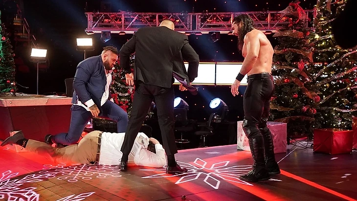 Мистер Хорн решил задобрить своего именитого оппонента рождественнской конфетой. И пока Роуэн думал к чему этот жест, Трэвис решил угостить и питомца Эрика. Правда учитывая откуда он их достал, да и слишком громкие намёки на то, кому это добро может достаться - это разозлило Роуэна и он прошёл агрессивным катком по Трэвису, окончив это running-кроссбади. Но финальным и традиционными аккордами стали 2 Iron Claw, от которых очередной мистер «J» уже не встал.