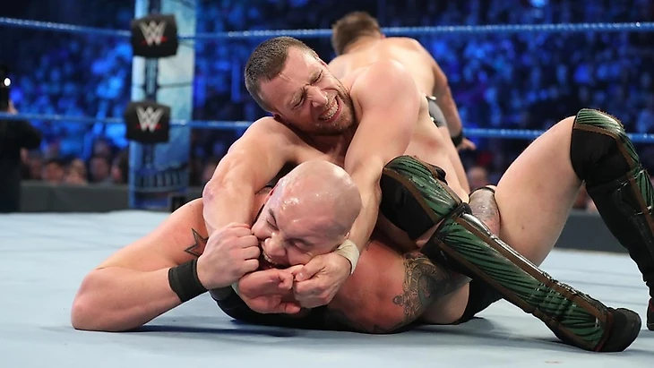 Начался бой с того, что Брайан и Миз обрушили на Корбина шквал ударов, от которых он сбежал на рингсайд. Ну а оставшиеся рестлеры в ринге устроили размен, в ходе которого Брайан провел суисайд дайв Бэрону. Миз попробовал достать Дэниела бейсбол дропкиком, но мимо, и «Американский Дракон» познакомил его плечо с рингпостом. А «Король», улучив момент, выбросил Брайана в зону тайм-кипера, а потом принялся мучить Миза. Длилось это недолго, и Бэрон переключил внимание на Дэниела. Миз остановил это дело своей связкой из бэкбрейкера на колено и некбрейкера после того, как Брайан встретил «Короля» бутом в углу. Тут же пошли коронные колени в углу, причем сразу и от Майка, и от Дэниела. Сколько их было — не счесть, но в итоге Корбин выбросил Брайана на апрон, а Мизу провел Deep Six. И тут же «Король» получил миссл дропкик от бывшего «чемпиона планеты». Вернулись мы с рекламы, увидев очередной размен между Мизом и Брайаном, которые не позволяли влезть в это дело Бэрону. В результате Дэниелу достался «низкий» DDT, а Корбин стал принимать кики в углу. «Четверка» последовала, а Брайан добавил еще и хэдбатт «Королю» с третьего каната. Удержание прямо не прерывая болевой — только до 2, и Дэниел перешел на Yes! Lock, перевернув Корбина, из-за чего получился реверс «четверки». «Эй-Листер» выбрался из болевого и разбил болевой Дэниела. Из очередного размена между Брайаном и Мизом победителем вышел Миз, и тут же его ждали разборки с Корбином, итогами которых стал End of Days, и Дэниел спас матч. Чокслэм Дэниелу у «Короля» не прошел, и он поймал момент для Busaiku Knee. И в этот момент в ринг залетел Зигглер, шарахнув суперкик ДиБи. Удержание от Корбина, и Рейнс стянул его с ринга, направив лицом в стойку ринга. Дольфу достался супермэн панч, после которого Бэрона Роман отправил «Одинокого Волка» в зрительский зал. С очередной рекламы мы вернулись для того, чтобы увидеть, как Брайан провел суперплекс Мизу. Попытку хэдбатта Майк пресек, проведя «Американскому Дракону» шинбрейкер с угла. Yes! Кики в исполнении Миза, финальный кик не прошел, и вот уже Yes! Kики от Дэниела. И тут тоже контрольный в голову не достиг цели, а «Эй-Листер» атаковал колено соперника, которое итак уже настрадалось в этом бою. «Четверка» не прошла, а спрингборд атаку Брайан перевел в суплекс с моментальным выходом на армбар, который почти был переведен в Yes! Lock, но Миз укусил визави за руку, и чуть не свернул до 3, за что получил хай кик. Коронное колено не прошло, Миз шарахнул Skull Crushing Finale до 2, и моментально вышел на «четверку», Брайан сумел отбиться, и вышел на Rings of Saturn, с которого перешел на Yes! Lock, и Миз был вынужден сдаться. Корбин, я так понимаю, во время рекламной паузы побежал с арены подальше от Рейнса. Отпраздновать Дэниел толком не сумел, так как на титантроне появился Брэй Уайатт. Он похвалил Брайана, отметив, что «Изверг» с ним не закончил. Так что готов ли ДиБи сделать все, что потребуется для победы? Готов ли Брайан впустить его? Дэниел и вся арена ответили «Yes!», на чем шоу вышло из эфира.