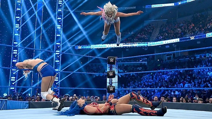 Бэйли и Саша Бэнкс против Лэйси Эванс и Даны Брук против Алексы Блисс и Никки Кросс – командный матч тройной угрозы.