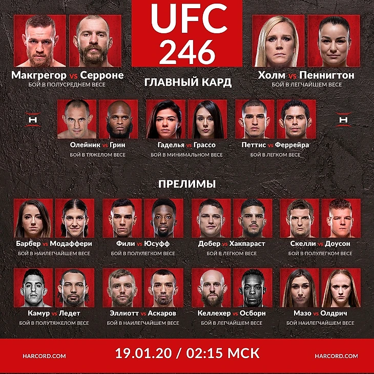 Файткард турнира UFC 246: Макгрегор против Ковбоя