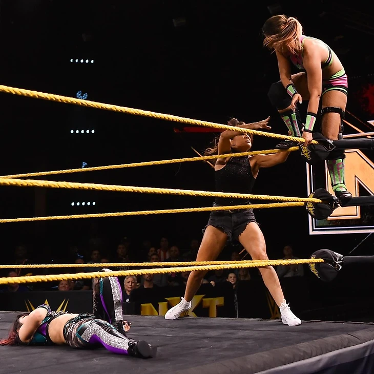 Далее плохие девочки начинают биться друг с другом. Шейна почти элиминирует Ио, заперев её в кирифуда клатч на апроне, но возвращается Шотци Блэкхарт и выкидывает из матча Бэйзлер!