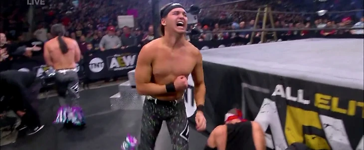 Спустя пару минут на ринг в белоснежном костюмчике взошел Коди. Для члена семьи Роудсов был непростой выбор. Недавно MJF вызвал его на бой, который, казалось бы, должен бы точно произойти. Однако все вышло в точности да наоборот. Коди уклонялся от ответа как только мог.