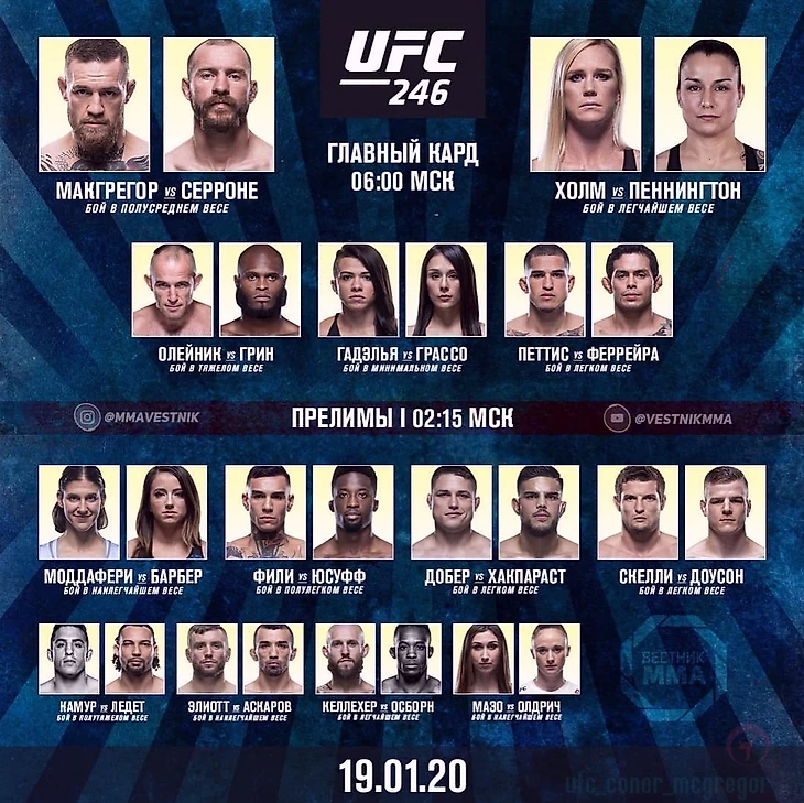 UFC246 Коротко о главном, не пропусти на этой неделе:
