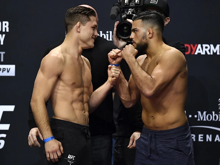 Сводный брат Келвина Гастелума является огромный фаворитом в этом бою (1.3 против 3.84 на Добера). Помимо молодости (Хакпараст младше Добера на 7 лет), афганский боец превосходит оппонента в росте и размахе конечностей. Хакпараст является ярко выраженным нокаутёром - 9 из 11 его побед завершались посредством KO/TKO. Он идёт на серии из трёх побед, самой серьёзной из которых является, пожалуй, победа на Марком Диакисе в июле 2018 года. О Добере сказать практически нечего - крепкий боец-универсал, имеет примерно равный процент по способам одерживать победы. Но в то, что Добер сможет доставить афганскому немцу какие-либо проблемы, верится с трудом.