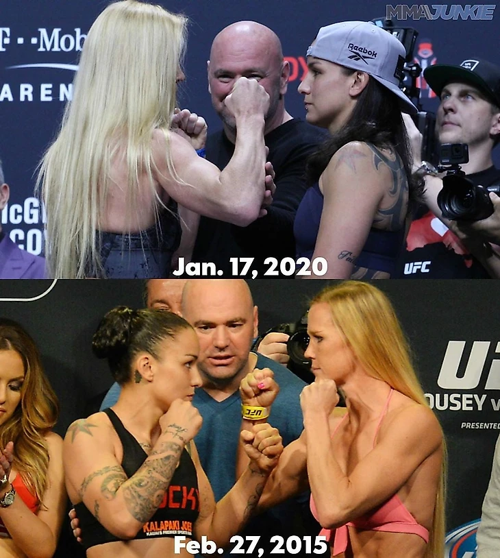 В ко-мэйне нас ждёт реванш пятилетней давности между топовыми представительницами легчайшего веса. Предыдущий закончился победой Холм раздельным судейским решением в феврале 2015 года. Но реваншироваться в эту ночь придётся не только Ракель. В своём последнем бою Холли потерпела жесточайшее поражение нокаутом в первом раунде титульного поединка против Аманды Нуньес, и бой против Пеннингтон будет являться своеобразным реваншем и для "Дочери Проповедника". Холм является небольшим фаворитом этого поединка (1.7 против 2.1 на Пеннингтон). На её стороне опыт и конечно же, потрясающая ударная техника (Ронда не даст соврать). Холли имеет 67% победы нокаутами,в то время как у Ракель этот показатель равен всего лишь 10%. Парадоксально, что при этом, Ракель наносит больше акцентированных ударов в минуту и процент их попадания выше, чем у Холм. По итогу мы имеем интересный бой довольно равных соперниц, которые своим выступлением должны максимально разогреть публику пред главным событием вечера.