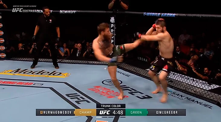 Макгрегор пытался пробить Хабибу такой же хайкик.