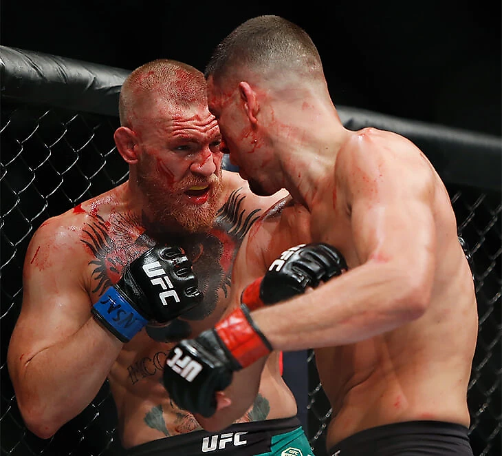 К счастью для Конора, к реваншу против Нэйта до судей боя дошел транш, поэтому он победил решением большинства. Совершенно не важно, что он несколько раз при этом ронял Диаса и сам не падал в кровавых разменах.