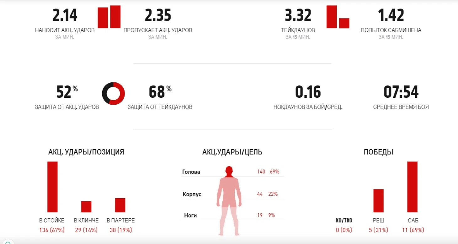 Майкл Кьеза показал себя в октагоне UFC в 2012м году. Первая победа в промоушене Даны была зафиксирована после финального поединка с Элом Яквинтой. В тот вечер Майкл и Фейбер получили по приятному подарку – ключи от «Харлеев». С тех пор Маверик провёл 12 боёв в высшей лиге мма. Почти двухметровый легковес опутывал длинными конечностями оппонентов и перекрывал кислород. Создалось впечатление, что кроме этого приёма он ничего не умеет (шучу, конечно). Кьеза любит обнимашки, любит изматывать врагов и искать момент, чтобы забрать спину. За свою карьеру он одержал 11(69%) побед и 9 из них были зафиксированы после удушения и две после треугольника и необычной кимуры Карлосу Кондиту. Ни одной победы нокаутом и 5(31%) побед решением судей. Поражений у Маверика четыре: один нокаут (25%) и три сабмишна (75%). А вот судьи всегда были на стороне Майкла – ни одного поражения решением.