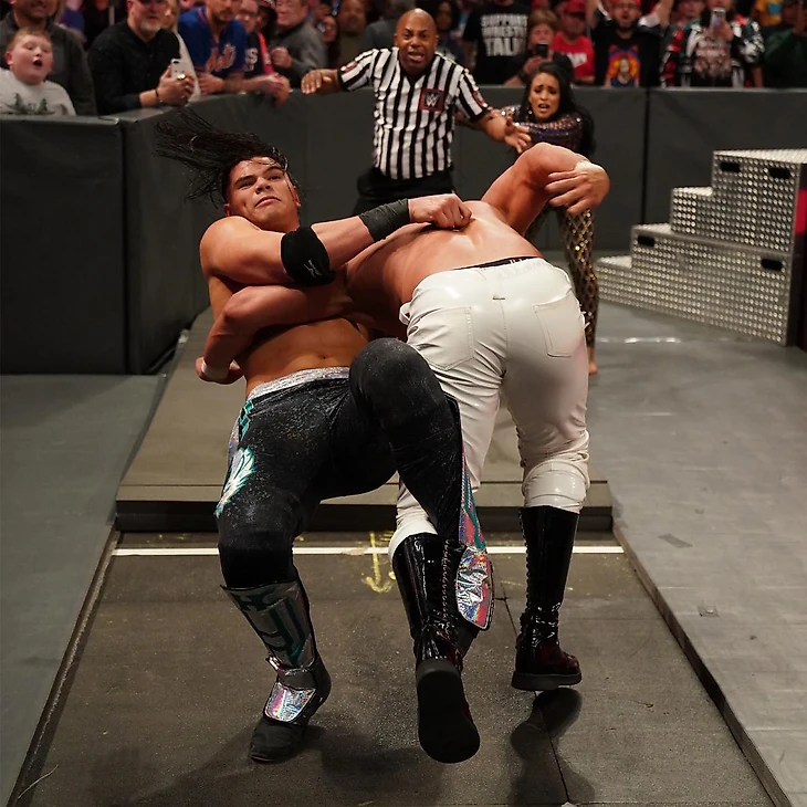 Все пытаются понять суть произошедшего, матч закончился победой претендента, но дисквалификацией. Значит, что титул остается у Андраде! Вега в экстазе, а ее подопечный пытается хоть как-то прийти в себя. Все это взбесило Каррийо, который максимально близко был к победе. Он начинает избивать соотечественника, отправляет в стальные ступени и убирает защитные маты. Да свершиться месть, длиною в месяц – Умберто пригвоздил в бетон Андраде его же Hammerlock DDT. В шоке все, а Зелина лишь бранит злодея.