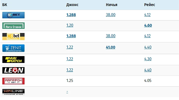 Джонс в одиннадцатый раз будет защищать титул чемпиона в полутяжелом весе. До этого ему никто не мог дать по-настоящему конкурентного боя, кроме Кормье, Густафсона и теперь Тиаго Сантоса. Сантос тогда показал, что Джонс действительно поменялся: он стал более осторожным, а доминирование или досрочная победа уже не в приоритете – главное победить. Но все же – это Джон Джонс. Его бойцовское IQ на таком же высоком уровне, а способов для победы все также много. Рейес хоть и мощный ударник с идеальным рейтингом, но он еще сыроват для уровня Джонса. Размах рук с разницей в 19 сантиметров – просто читерство по отношению к молодому претенденту. А отсутствие у Доминика борьбы добавляет в копилку Джона план Б, В и Г, если в стойке что-то будет не получаться. Поэтому коэффициент, выставленный аналитиками букмекерских контор, более чем оправдан.