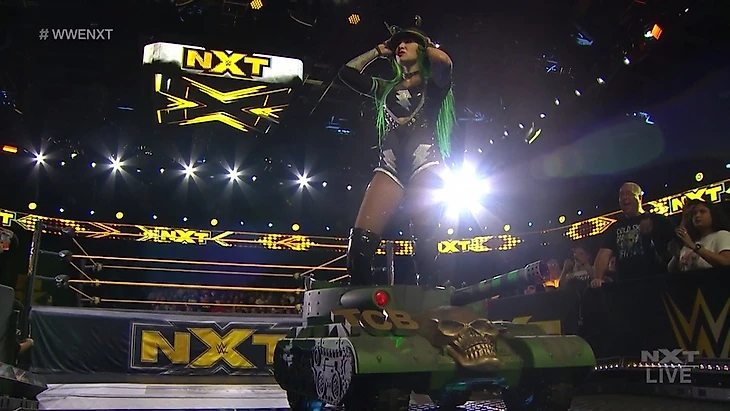 — На очереди у Кэти Келли появился Томассо Чиампа. На вопрос о том, кого выберет Уильям Ригал в качестве оппонента для Адама Коула на ТО в Портлэнде, Чиампа указал - папочка вернулся, чтобы вернуть свою Голди и если ему придётся решать вопрос самостоятельно, он это сделает. И показав металлическую трубку, подчеркнул "Будьте в этом уверены";
