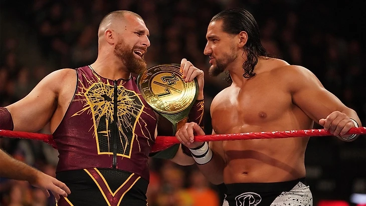 — Сразу же нам напомнили о том, что около 2 месяцев назад во время финала гаунтлет-матча за претенденство на чемпионство США Умберто Каррилльо пострадал от рук Андраде вне ринга. А на прошлой неделе Алмасу был возвращён этот должок, плюс и из-за срыва титульного боя между ними за титул США;