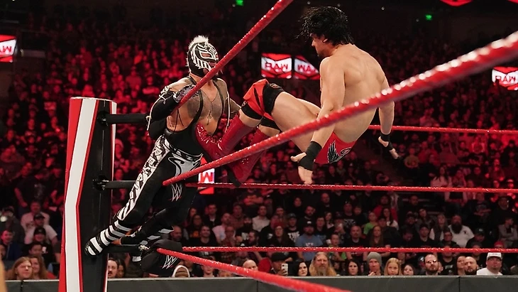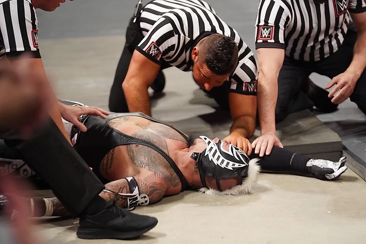 Рефери сразу стали проверять состояние Мистерио после выходки от Гарзы, а сам Анхель с Зелиной покинули рингсайд.