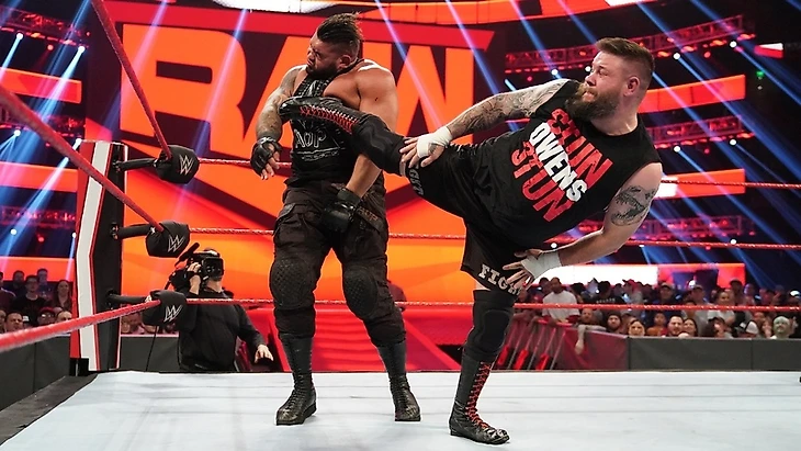 И как только Рикошет приготовился к 630-сэнтону - объявились Мёрфи и AOP, избив обоих оппонентов Роллинса. Правда и на них нашлась управа в лице Кевина Оуэнса - он дал понять, что не прекратит бороться против тирании Роллинса, также присоединился и Эрик из The Viking Raiders. Оба вооружились стульями и стали прогонять людей "Архитектора" с рингсайда.