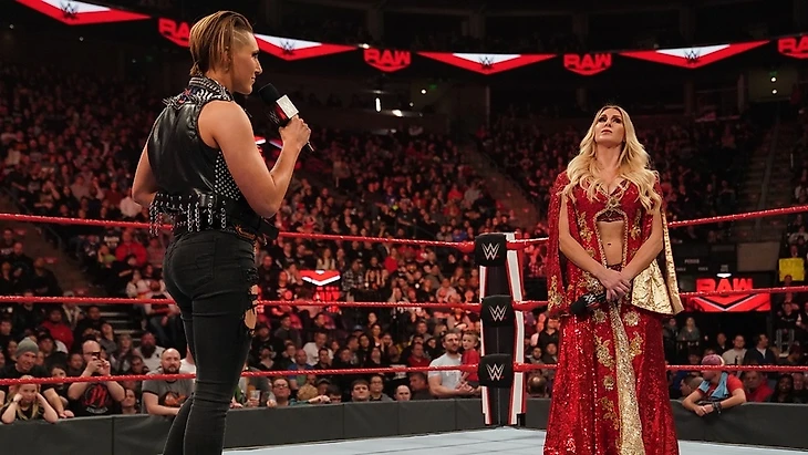 — Решение "Королевы" - закон или испытание? И для кого именно? На ринг проследовала победительница женской Королевской Битвы 2020, Шарлотт Флэр. Она говорит, что настало пора принять решение с кем ей сразиться на WrestleMania 36 - Бекки Линч или Бэйли. И проблема в том, что она уже множество раз сражалась и с той, и с другой - и как правило постоянно их побеждала, завоёвывая золото и RAW, и SDLive. Зрители стали чантить имя Риа Рипли, а Флэр даёт понять, что нужно иметь возможность сражаться не только за титулы главных брендов - есть возможность для разнообразия. И она как 10-кратная женская чемпионка WWE хочет иметь возможность сражаться против всех обладательниц всех женских титулов в WWE. И по душу "Королевы" объявилась охотница - женская чемпионка основного NXT Риа Рипли. Последняя напоминает о словах Флэр - она побеждала Линч, она побеждала Бэйли, но вот не побеждала Рипли. А ведь Риа имеет одну победу над Шарлотт (угадайте когда), поэтому выбор "Королевы" тут очевиднее некуда. Зрители чантят "Yes", а Шарлотт с очень задумчивым видом смотрит на титул - и покидает ринг в таком же состоянии, пока Риа смотрит той вслед. Хотя последнее WOOO от Флэр явно намекает на продолжение диалога (И раз уж этот сегмент состоялся - решение принято, отчего остаётся просто ждать официальных подтверждений. Ну и как оказалось - тут даже есть определённая история для развития, так что почему бы не пойти до конца?);