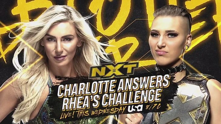 — И вот большой анонс: Шарлотт Флэр даст свой ответ по поводу вызова на титульный бой от Риа Рипли. И уже на грядущем выпуске NXT (И снова подтверждается лёгкое размежевание границ между брендами Monday Night RAW и основным NXT).