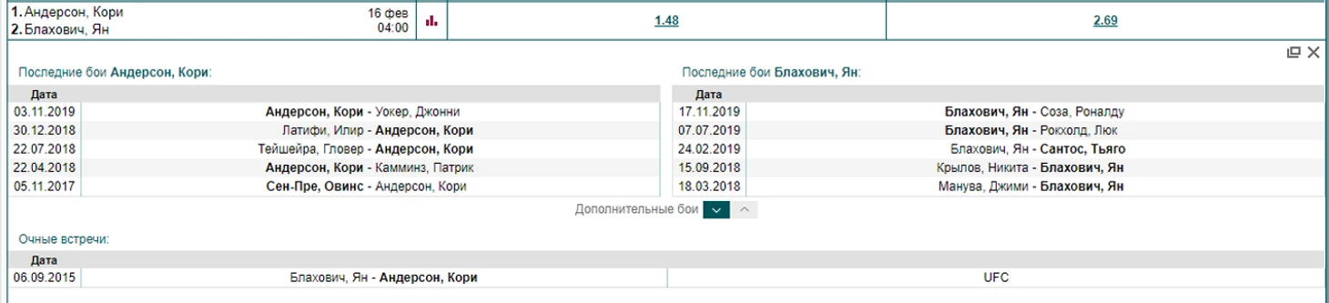 Если посмотреть коэффициенты, которые дают букмекеры, то можно увидеть, что на победу Андерсона дают 65%, а на победу Блаховича - 35%, что не так уж сильно разнится с нашими значениями.