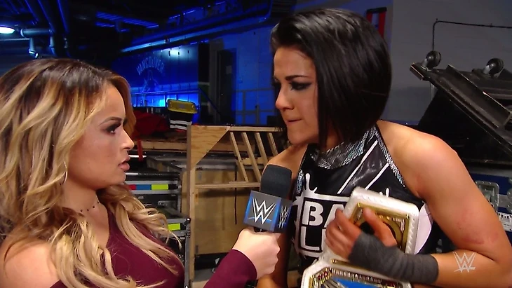 — За кулисами Бэйли пришла в себя после драки с Наоми и Кармеллы. Чемпионка была в бешенстве от этого, а Кайла Брэкстон стала спрашивать что Бэйли намерена делать - давать Кармелле рематч за титул или же противостоять кому-то другому, такой как Наоми. Бэйли ответила, что её не волнует кто против неё выступит - она, как и сегодня, отстоит свой титул. И на этот раз она намерена повторить свой успех в Аравии - на шоу WWE Super Showdown II (Смелая конечно заявка - тем более учитывая, что в прошлом году арабы с трудом дали добро на первый в истории женский матч. Наоми или Кармелле придётся придумывать себе новые аттиры - более консервативные);