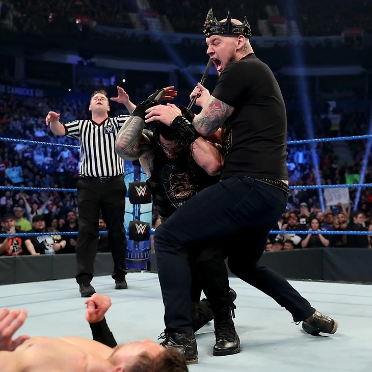 И на этом деле их прервал выход самого Рейнса, который быстро и без слов представил своего командного партнёра - им стал Дэниел Брайан, отчего Миз чуть не пробомбил.