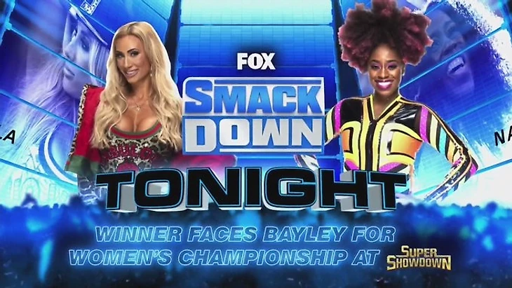 — Анонс матчей: прежде всего боя между Кармеллой и Наоми за тайтл-шот на женское чемпионство бренда и матча против Бэйли на SSD II в Аравии.