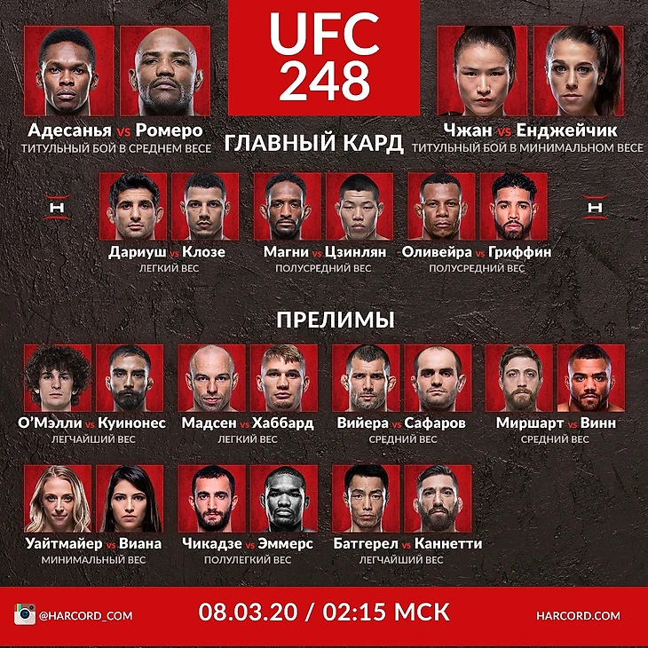 ⏰08 марта в 06:00 (мск) - Главный кард (UFC ТВ)