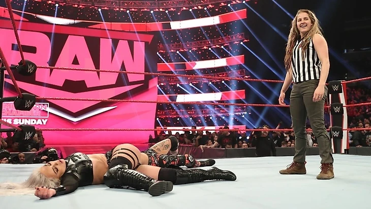 Руби Райотт против Лив Морган (Сара Логан — рефери матча).