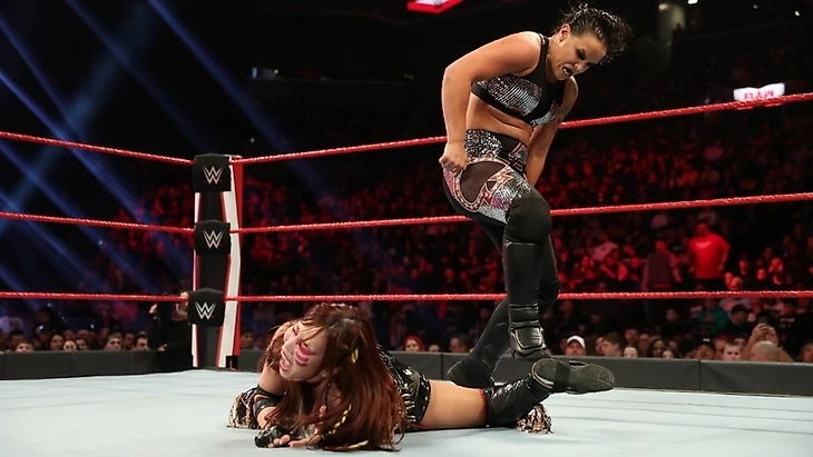 Перед матчем Аска похвасталась тем, что у неё травма руки, а это значит, что Шэйне повезло. Но сегодня она получит люлей от Каири. Одним своим поведением бывшая ММАшница унижала японку: то подножка, то неторопливые действия. Но в один момент Каири провела подножку Шэйне, а затем начала шлёпать себя по попке. Это разозлило Бэйзлер не на шутку. Она положила Каири на лопатки Spinebuster`ом и стала заламывать ногу. Это избиение прервала Бекки Линч, которая присоединилась к комментаторам за стол.