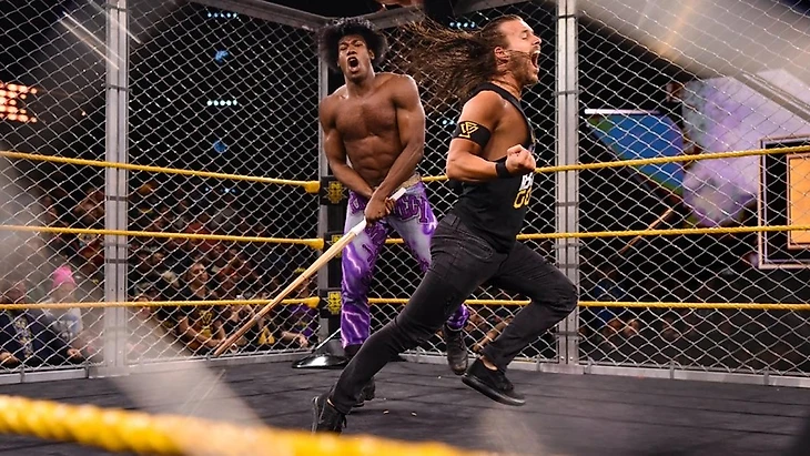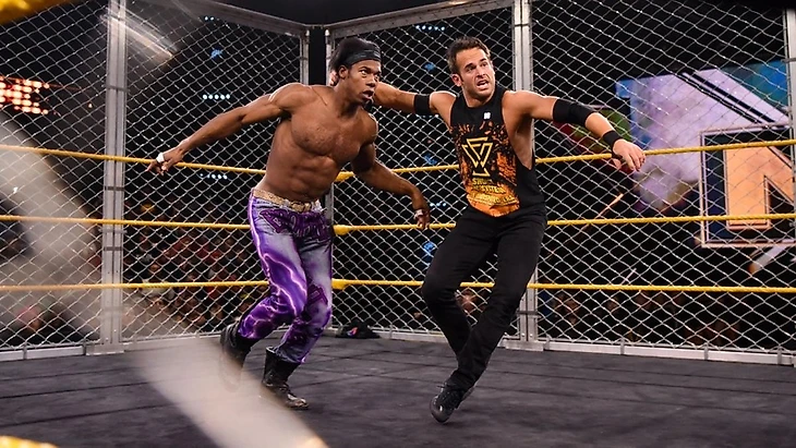 Родерик напал на Вельветина сразу, как зашёл в клетку. Он избивал его, пока не попытался запустить в клетку. Когда Стронг это сделал, Дрим просто забрался на стенку клетки и провёл double axe hand оппоненту. После этого он также принялся избивать Стронга, попытался провести Dream Valley Driver, но Родерик среверсировал, а затем запустил Дрима в клетку. Ещё некоторое время избиений, back suplex, несколько ударов локтём висящему на канатах оппоненту, но при исполнении последнего Стронг влетает в клетку не без помощи Дрима, а затем ещё и получает backbody drop об неё же. В этот момент появляется Марина Шафир, которая просовывает мужу в клетку кендостик. Однако, воспользоваться им получается именно Дриму, который уворачивается от атаки и бьёт им несколько раз Мессию Бэкбрейкеров. Через некоторое время у Родди получается самому завладеть палкой кендо и ударить ей несколько раз Вельветина. После ещё нескольких панчей оба оказываются на третьем канате, откуда падает Стронг. Дрим пытается провести purple rainmaker, но встречает перед собой выставленные ноги, которые используют, чтобы провести Boston crab. Родерику почти получается перевести его в Stronghold, но у Вельветина получается перевести его в сворачивание. После этого вновь попытка dream valley driver, но Стронг перебирается через канаты, где получает несколько дропкиков и суперкик. После этого каждый по очереди пытается вновь использовать кендостик, успешнее оказывается Стронг, который проводит бэкбрейкер с использованием кендо. После этого он пытается выбраться из клетки, Вельветин лезет за ним и получает Olympic slam при попытке обогнать оппонента. После неудачного удержания член Неоспоримой Эры ползёт к выходу, Вельветин пытается его опередить и всё это приводит к тому, что Стронг получает 2 dream valley driver и почти получает purple rainmaker, но тут уже появляется Эра. Вельветин принимается отбиваться от них, нейтрализует О'Райли и Фиша, пока они забрались, а затем и Коула, что был внутри клетки. Тем временем, Родерик уже подползает к выходу, Дрим это видит и хватает его, однако смотрит на Коула в клетке и решает вытолкнуть из клетки Стронга, заперев её изнутри, так образом проиграв матч, но оставшись один на один с чемпионом NXT.