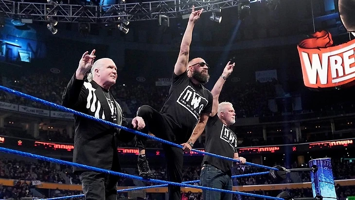 Мистер Рэйзор Рамон поприветствовал зрителей фирменным "Hey Yo", а Кросс решила сделать селфи с nWo на память. Далее, после ремарки в сторону Икс-Пака как представителя двух величайших группировок, Алекса завела разговор о предстоящем титульном матче между Голдбергом и Романом Рейнсом. Первым ответил Нэш: он отшутился по поводу того, что он уже и забыл, когда это происходило. Но потом добавил, что встречался не так давно с Рейнсом и успел дать ему напутствие по поводу подготовки к бою против Билла, а также уточнил - хоть Нэш и не раскрыл всех своих секретов, но Рейнсу это не нужно, так как у последнего есть многое для победы над легендой WCW. Но идиллию диалога прервала наша интернациональная команда...