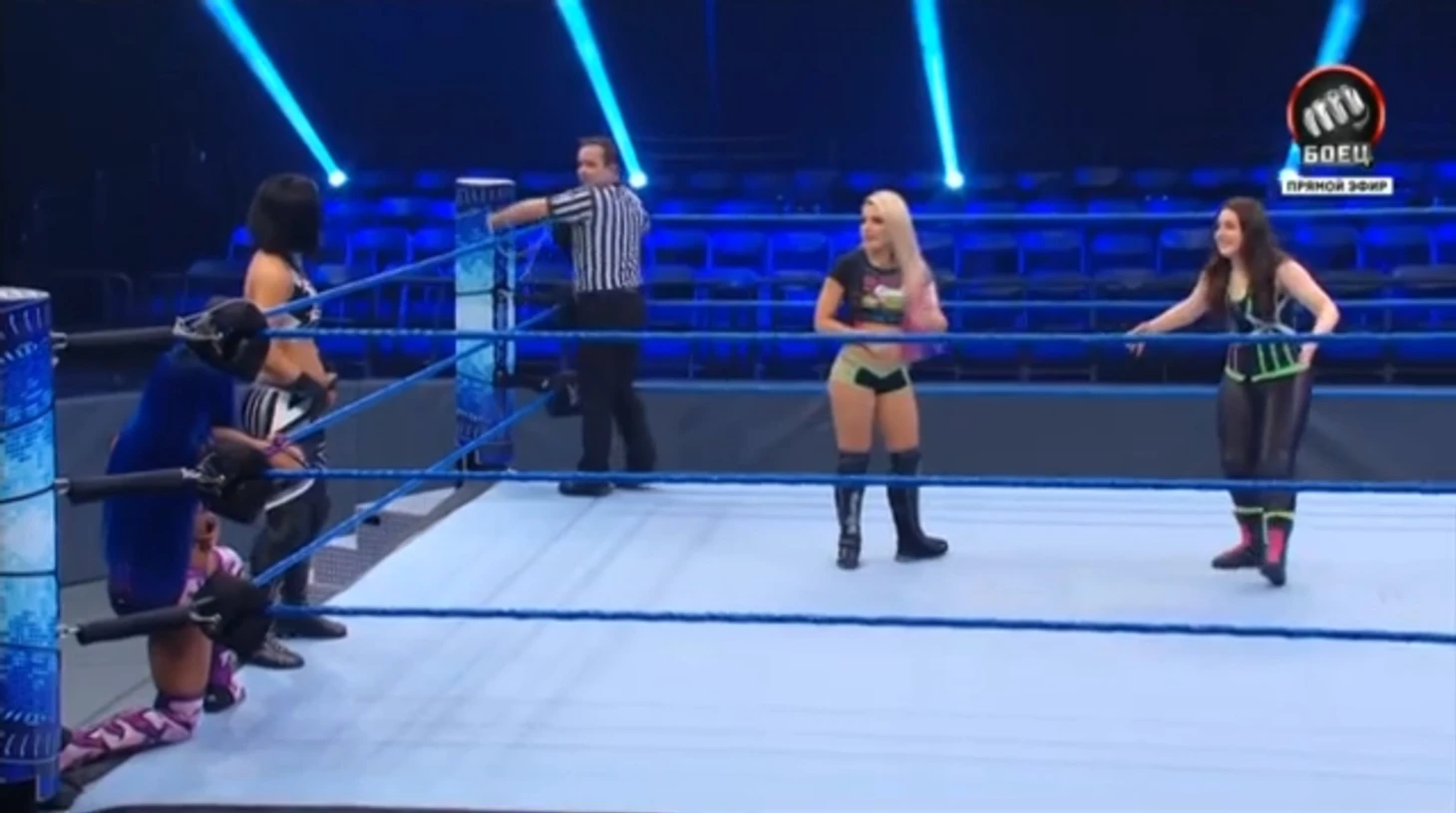 На выпуске не обошлось и без самих поединков при пустых трибунах, WWE попросту не могли оставить нас без них. Первыми отстрелялись все те же девушки, которые выступили в командном матче. Ну а поклонники рестлинга по всему миру перед экранами телевизоров, в свою очередь, впервые в своей жизни увидели рестлинг-матч без зрителей. Это было очень странно. Это напоминало режим карьеры в видеоигре WWE2K, где тебе нужно начинать с тренировочных матчей в Подготовительном центре. Те, кто рестлингом увлекаются и те, кто играл в эту серию игр, меня сейчас поняли.