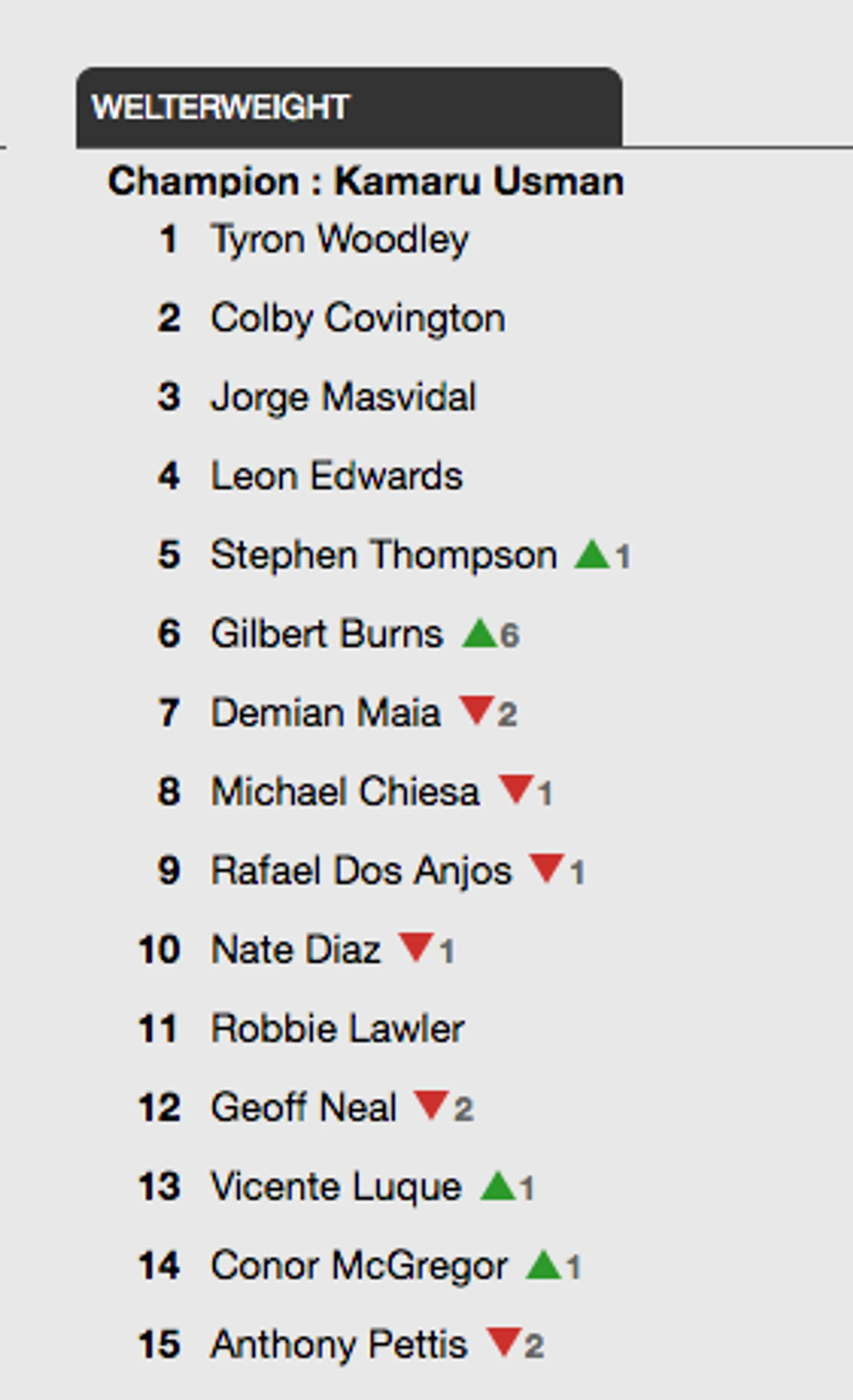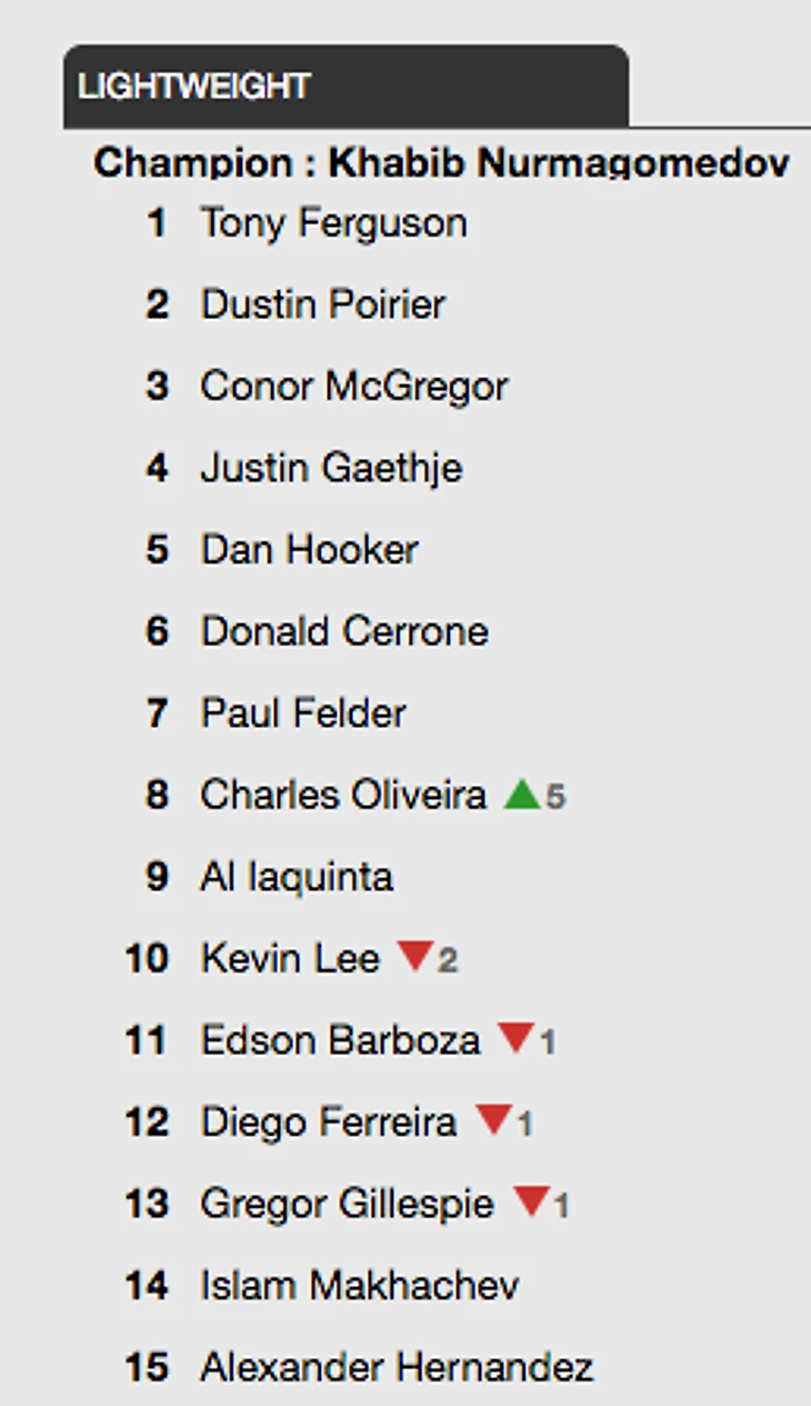 Обновлённый рейтинг после прошедшего турнира UFC в Бразилии