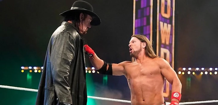 Три. Особняком стоит и конфликт между Гробовщиком и Стайлзом. Самое смешное, что третье по счету противостояние раскрыто лучше, чем первые два вместе взятых. Все началось с того, что Стайлз разок-другой упомянул Мертвеца всуе, а на шоу в Аравии тот решил показать, что творить беспредел Феноменальный не сможет.