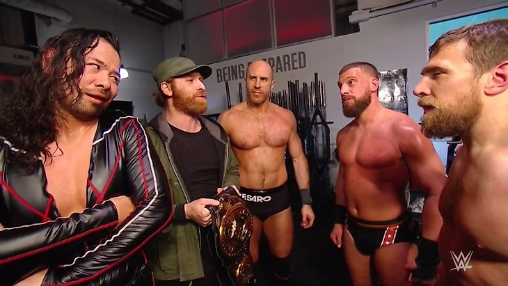 Начали бой Шинске и Дэниел - действие началось с осторожного лок-апа, в котором рестлеры ловко и интенсивно боролись. Но это было очень коротко из-за выхода на ринг Гулака, а затем и Сезаро. Дрю принялся во всю показывать свой особый стиль, практически взяв инициативу на себя, а выход Брайана с лэгдропом дал шанс фейсами на перехват инициативы. Но Сезаро через секунду всё свёл к напряжённой борьбе и Дэниела понесло во всю: он сбросил Шинске и добавил ему суисайд-дайв, а после этого снова сцепился с Сезаро, пытаясь провести кроссбади. Однако швейцарец перевёл полёт Брайана в бэкбрейкер и пробил бут Гулаку, чем вызвал неистовое восхищение Зейна.