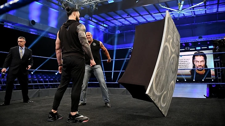 — Подписание контракта между чемпионом Вселенной WWE Голдбергом и Романом Рейнсом (И снова в мэйн-ивенте, не сомневайтесь).