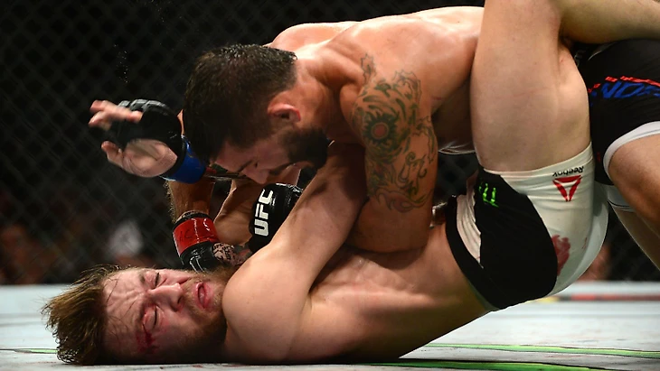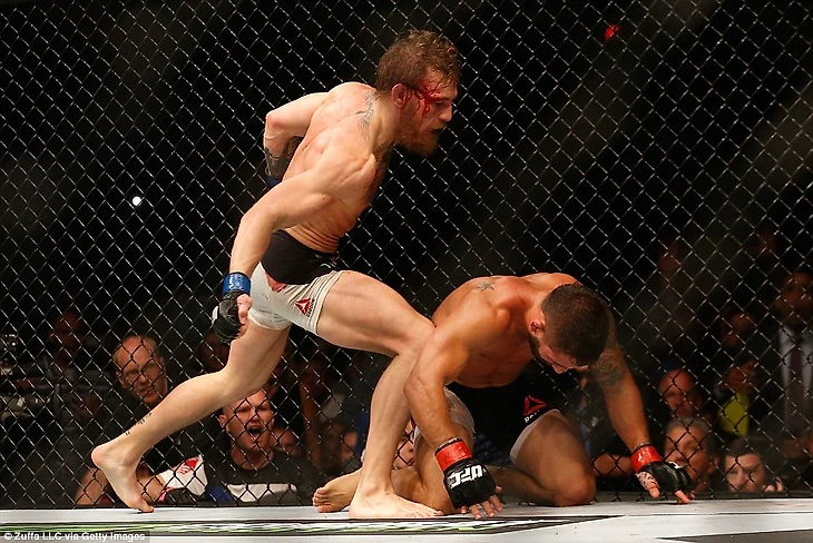 Конор Макгрегор стал новым временным чемпионом в полулёгком весе UFC, выиграв этот бой вопреки всему. Вопреки страшной травме, вопреки новому сопернику, вопреки двум вчистую проигранным раундам, вопреки неудобному по стилю сопернику.