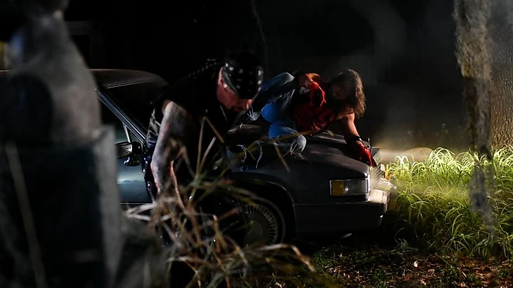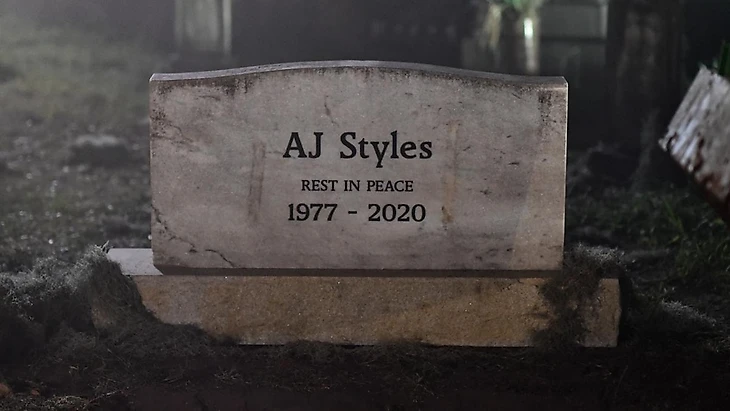 И запахло нехорошим куском жаренного, правда куда же без опыта сквоша таких же кадров в 2015 году во времена противостояния Семье Уайатт - если бы не вмешательство самих дружков Стайлза в процесс драки. Как только Гроб вошёл во вкус расправы над подсосами "Феноменального" - последний атаковал со спины целой гробовой плиткой в спину и голову Тейкера. Для Стайлза это было переломным моментом из-за скверного состояния Гроба - ЭйДжей не церемонился и гонял старика Марка от одной стенки к другой, усиливая урон и приговаривая о том, что сила "Мертвеца" уже не та, что прежде. Что он больше не "Феном". Ответом от Тейкера стал...его же средний палец на это мнение, из-за чего Стайлз загнал байкера к ближайшей могиле и сбросил его лопатой по спине.