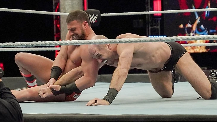 — Дрю Гулак против Сезаро (на самом кик-оффе);