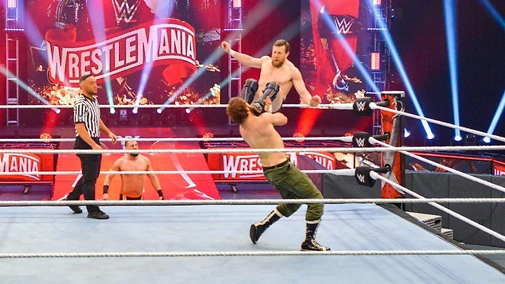 Брайан был готов к бою, а вот Сэми начал активно филонить и требовать от рефери обеспечить себе безопасность от агрессии Дэниела. Последний толком и не противился этому, но Зейн своими выходками злил его и Гулака, рефери стал даже отсчитывать. Брайан устал это терпеть и пытался нагнать Сэми - Сезаро и Накамура делали своё дело и прикрывали друга. Дэниел решил быть более последовательным, а вот Гулак решил иначе, атаковав обоих друзей чемпиона. В итоге Сэми пытался атаковать Дрю, но внезапности вышла в ноль, а Брайан придерживал Дрю, чтобы дать Зейну уйти. И тот купился на уловку - Дэниел вернул силком чемпиона в ринг и тому уже некуда было деваться.