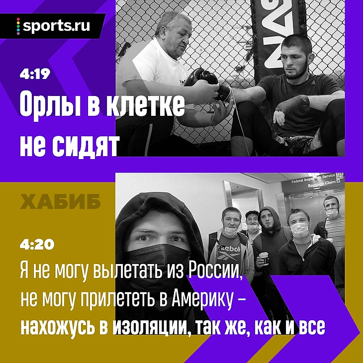 Бой Хабиба против Тони Фергюсона, кажется, и правда проклят: Дэйна Уайт заявил, что UFC 249 все-таки состоится, но уже без Нурмагомедова. Поединок сорвался в пятый раз, теперь – из-за тотального недопонимания Хабиба и UFC. По словам Нурмагомедова, это UFC убедил его в том, что бой пройдет в Абу-Даби, поэтому ровно за месяц он отправился туда из США. Но из-за пандемии коронавируса границы были закрыты: так Хабиб оказался в России в изоляции.