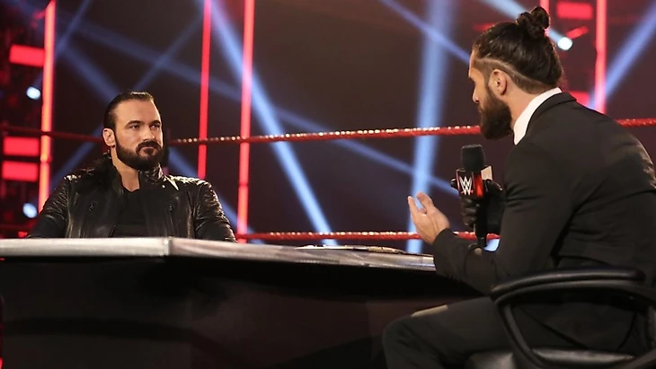 Джерри Лоулер открыл этот сегмент, напомнив нам о том, какие особенные MitB матчи нас ждут на ближайшем PPV. А потом, пообещав нам один из самых интересных матчей за чемпионство WWE за последнее время, он пригласил претендента — Сета Роллинса. Вторым появился действующий чемпион — Дрю МакИнтайр. Шотландец, еще не успев сесть за стол, сказал Лоулеру, что тот знает, что обычно происходит в такого рода сегментах, поэтому предложил члену Зала Славы покинуть ринг на всякий случай. Тот согласился, что это хорошая идея, так и сделал. Дрю сразу подписал контракт, и предложил сделать то же самое оппоненту. Он решил, что им стоит сделать это быстро. Однако, Роллинс стал убеждать МакИнтайра, что он не хочет этого. Да, он атаковал чемпиона 2 недели назад, чтобы привлечь его внимание на себя и добиться этого матча, ведь чемпионство WWE должно быть там, где ему место. Сет отметил, что речь сейчас идет не о нем, и не о Дрю, а о намного большем. Когда-нибудь МакИнтайр будет выдающимся чемпионом, он хороший боец, но он не лидер. А вот Роллинс может быть лидером. Ведь куда бы он не приходил в своей карьере, он всегда был лидером и люди следовали за ним. И сейчас лидер нужен WWE, и Сет может стать этим источником света в темном царстве. Он уже успел пострадать за этот титул, и он не желает Дрю страдать также. У МакИнтайра есть возможность не страдать, ведь это бремя Роллинса, а не его. Сет не хочет рушить мечты соперника, но он делает это для большего блага. Когда-нибудь все это дойдет и до Дрю, и тогда шотландец сможет прийти к Роллинсу, и найти в его лице лидера для себя. Чемпион поблагодарил противника за такую речь, она прояснила очень многое для Дрю и всех остальных… теперь ясно, что Сет — кусок дерьма. Где его последователи? Более того, что бы ни происходило, Роллинс никогда не винит себя. Когда фанаты повернулись к нему спиной, Сет обвинил их во всем. МакИнтайр не видит полной картины, но точно знает, что не отдаст чемпионство Роллинсу. Также он решил дать 2 совета визави. Во-первых, перестать все время говорить. Ведь он только и делает, что говорит, но никто не хочет слышать это. А во-вторых, Дрю посоветовал претенденту закончить начатое 2 недели назад и быть готовым сделать максимум от себя. Ведь Дрю будет во всеоружии. Оба рестлеры поднялись, и Сет пообещал, что на Money in the Bank станет видна общая картина. И чемпиону лучше быть готовым к этому. Сет подписал контракт, и предложил МакИнтайру уверовать в… мы никогда не узнаем (нет, мы все поняли), во что должен был уверовать шотландец, потому что он не дал недругу договорить, а приложил его лицом об стол. После этого стол улетел за пределы ринга, а Дрю провел ему еще и хэдбатт. И вот он уже был готов шарахнуть Claymore, как с апрона его атаковал не пойми откуда взявшийся Мерфи. Избив МакИнтайра он помог своему лидеру подняться, и они обнялись. И в следующий же момент в лицо Бадди прилетел Claymore, от которого австралиец спас «Мессию», а Роллинс покинул ринг… End Scene.